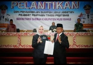 Di hadiri langsung Bupati Mura, Hj Ratna Machmud yang sekaligus melantik dan pengambil sumpah/janji Sekda Kabupaten Musi Rawas,tampak hari juga Wakil Bupati (Wabup) Mura, Hj Suwarti, Staf Ahli Gubernur Sumatera Selatan, Ketua TP PKK Musi Rawas H. Riza Novianto Gustam, Forkopimda, Sekda Musi Rawas, Staf ahli dan asisten, Kepala OPD lingkungan Pemkab Musi Rawas dan tamu undangan lainya.
