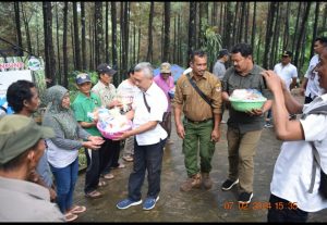 Administratur Perhutani KPH Jombang Kelik Djatmiko,dilokasi menyampaikan bingkisan ini diberikan sebagai wujud perhatian Perhutani ke mitra, yang telah turut bekerja sebagai penyadap getah pinus.