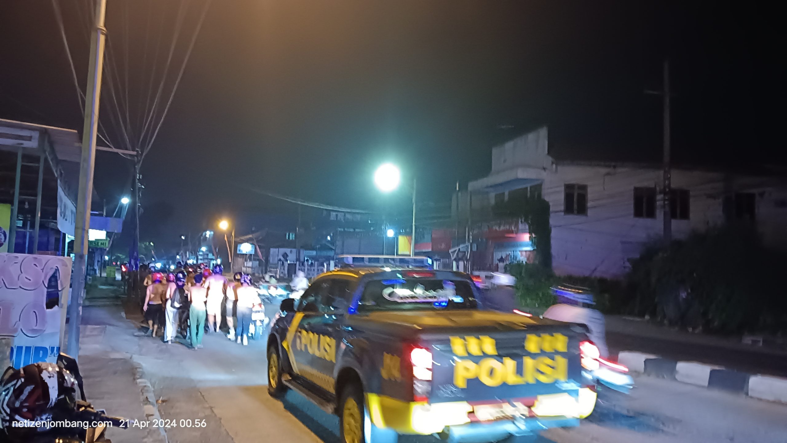 Sebanyak 55 remaja digiring polisi dengan bertelanjang dada dan mendorong motornya ke Mapolres Jombang, Minggu (21/4/2023) dini hari.