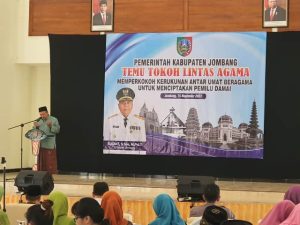 Jombang, 15 November 2023 – Forum Kerukunan Umat Beragama (FKUB) Kabupaten Jombang dan Badan Kesatuan Bangsa dan Politik (Bakesbangpol) Kabupaten Jombang menggelar Temu Tokoh Lintas Agama dengan tema “Memperkokoh Kerukunan Antar Umat Beragama Untuk Menciptakan Pemilu Damai”. Kegiatan ini diselenggarakan di Gedung Pertemuan Gereja Kristen Jawi Wetan Mojowarno, Kabupaten Jombang, pada hari Rabu, 15 November 2023.