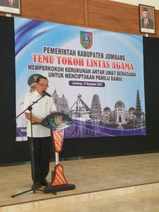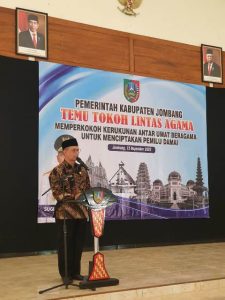 Dalam sambutannya, Drs. Anwar, MKP., mewakili Bapak Pj Bupati Jombang Sugiat, S.Sos., M.Psi., yang berhalangan hadir karena menerima kunjungan Mahasiswa PMII Jombang, menyampaikan bahwa kerukunan umat beragama merupakan hal yang sangat penting untuk dijaga dan dipelihara. Kerukunan umat beragama dapat terwujud jika semua pihak saling menghormati dan menghargai perbedaan.